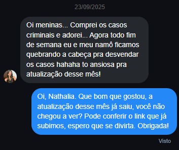 Você receberá os jogos digitalmente e poderá imprimir para dar mais realidade a sua experiência. Com o Caso Criminal escolhido e em mãos, está tudo pronto para começarmos!